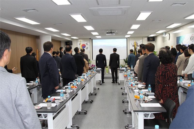 제4차 (사)한국경비협회 정기 이사회에서 애국가 제창을 하고 있다.