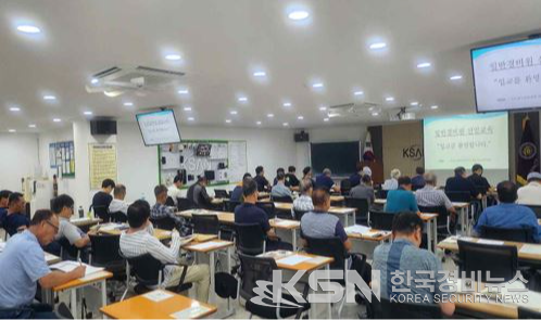 9월 23일 9시부터 성수이로 20길 10, 5층 (사)한국경비협회 중앙회 교육장에서 수강생들이 일반경비 신임교육을 받고 있다.사)한국경비협회 중앙회는 23일부터 27일까지 3일간 37차 일반경비 신임교육을 성동구청 위탁교육과 함께 실시했다. 한국경비협회는, 전문 경비원 양성을 위하여 경비업법에 의거 전국 교육장에서 일반