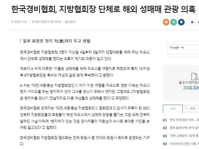 경비협회 자금으로 성매매 관광한, 전)지방회장들 횡령 등 법적조치 위기