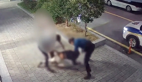 (울산=연합뉴스) 김근주 기자 = 폭행 장면을 목격해 신고한 시민이 출동한 경찰관들과 사건 처리 문제로 말다툼을 벌이다가 도로 바닥에 넘어뜨려져 머리와 목이 눌린 채 체포돼 논란이 일고 있다.
