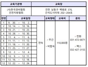 (사)한국경비협회 인천지방협회(회장 오상준) 9월 30일부터 12월 24일까지 인천 남동구 간석도시타워에서 ‘경비원 신임교육’ 일정을 공개하였다. 이번 교육은 비합숙·주간 과정으로 진행되며, 교육비는 110,000원이다. 경비업체 종사 희망자, 재취업 준비자 등을 대상으로 한 법정교육으로, 교육 수료 후 협회 회원사를 통한 다양한 취업 연계 기회가 제공된다. 4 0 KSN 한국경비뉴스 씨큐리티코리아 박선경기자 ksanpr@ksan.or.kr 씨큐리티코리아 박선경기자의 기사 더보기 저작권자 ⓒ KSN 한국경비뉴스, 무단 전재 및 재배포 금지